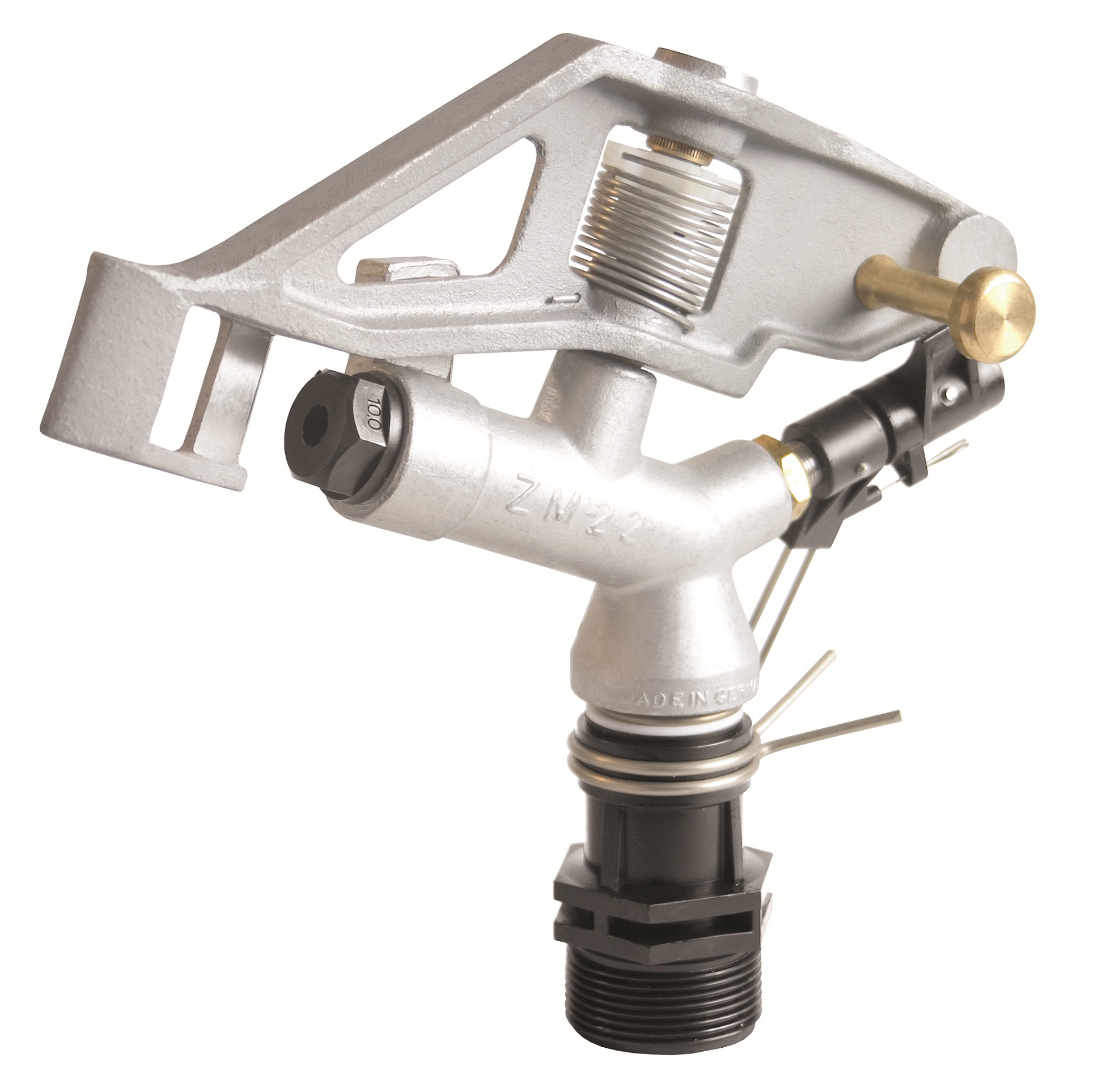 Arroseur ou canon d’irrigation professionnel pour l’arrosage des espaces verts, terrains de sport et cultures. Débit et portée réglables selon les besoins. Régler la pression d’alimentation selon les spécifications du produit. Purger le circuit en fin de saison pour éviter le gel.