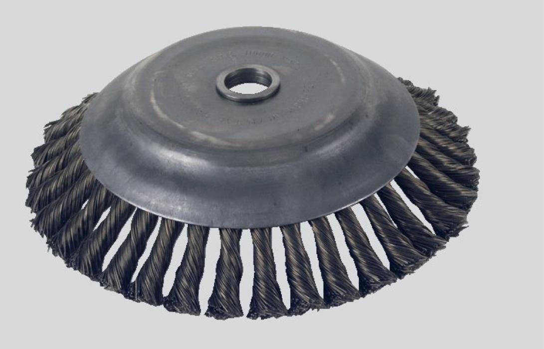 La brosse de désherbage mécanique s’adapte sur toutes les débroussailleuses thermiques d’une puissance supérieure à 30cc .