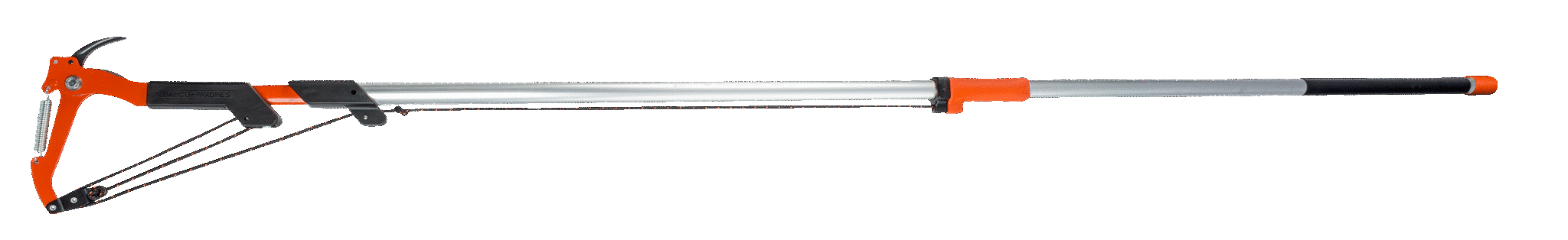 Le principe d’utilisation est simple et efficace : il suffit d’accrocher la tête de coupe sur la branche souhaitée et de tirer sur la cordelette à l’aide de la poignée orange pour actionner la lame. La lame en acier trempé effectue une coupe tirante qui garantit une coupe nette, précise et sans éclats. Ce mécanisme assure une excellente transmission de force, même à distance, pour venir à bout de branches jusqu’à 30 mm de diamètre.